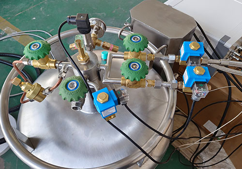 放空閥:系統停機時可手動開啟/關閉放空閥,綠燈亮起代表當下處于開啟狀態(設備通電后自動控制罐內壓力至指定壓力值);消音:系統發生報警時,手動解除報警按鈕;